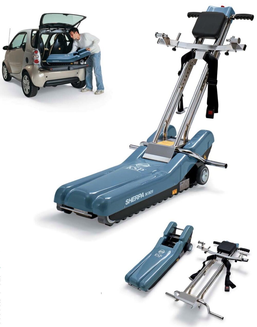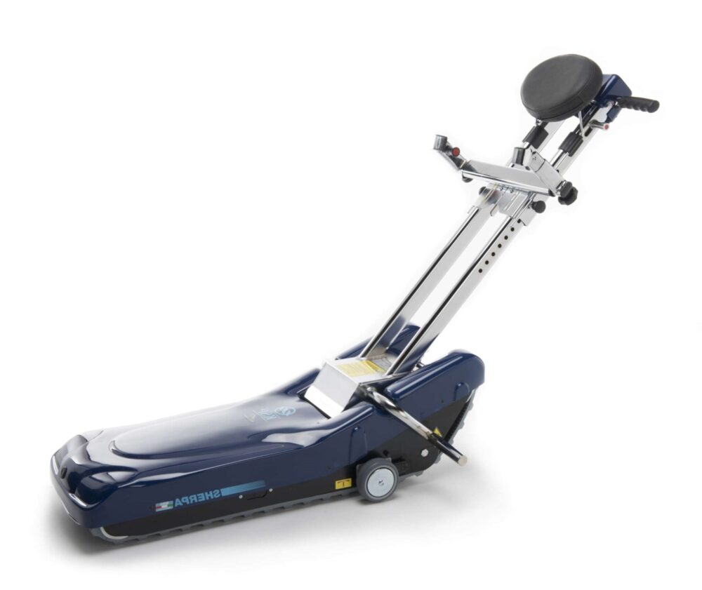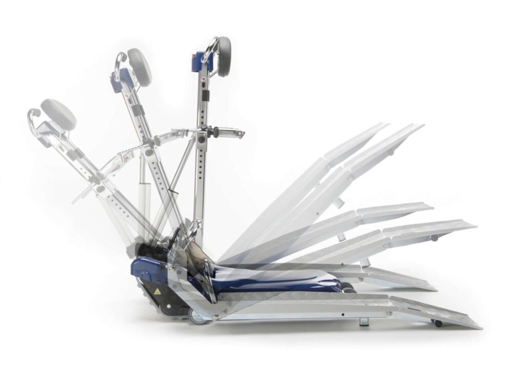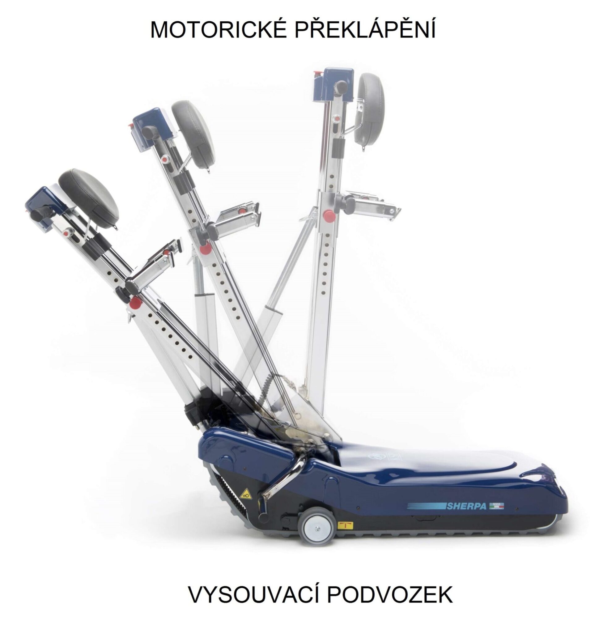 Moderní pásový schodolez s několika variantami provedení a mimořádnými funkcemi výsuvného podvozku a motorického překlápění řídítek pro usnadnění použití a zvýšení průjezdnosti malými prostory. Ovládání je ergonomicky v horní části řídítek.