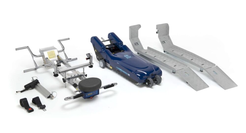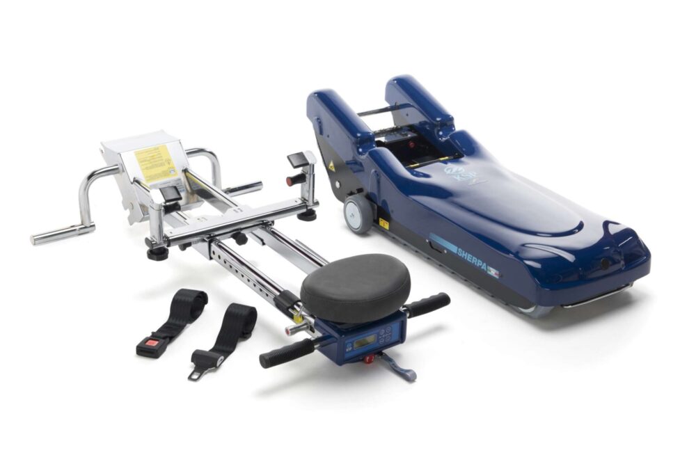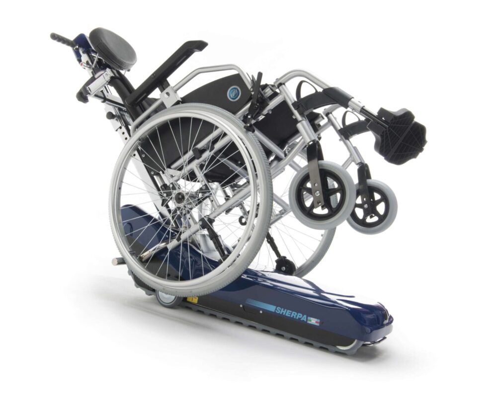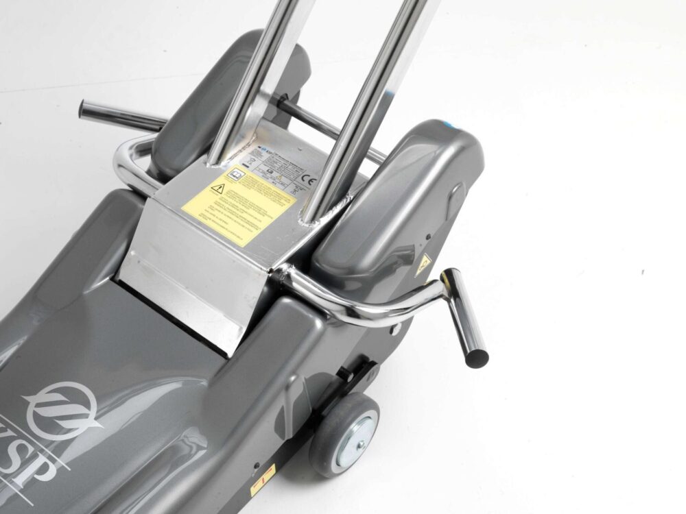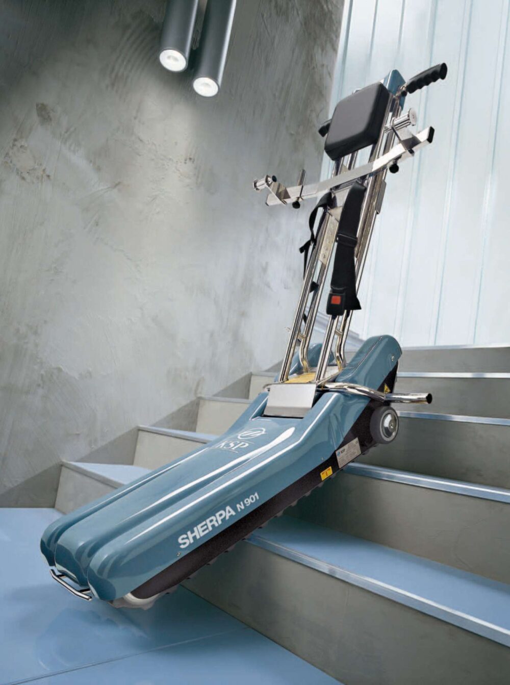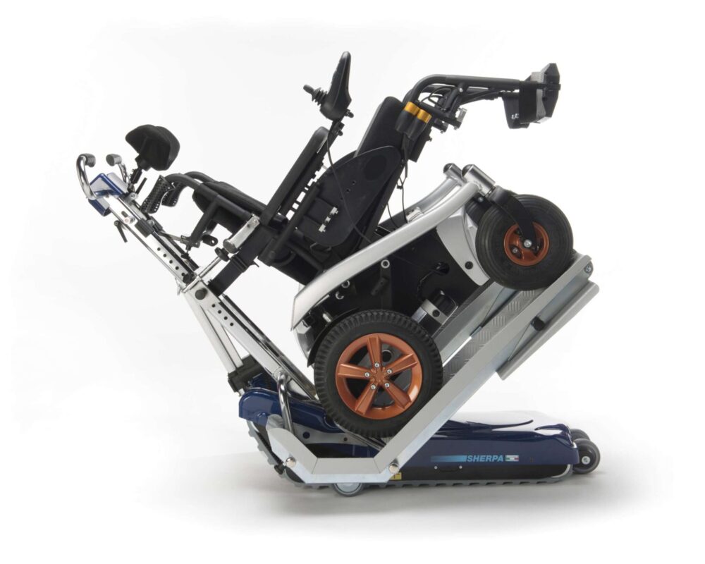 Moderní pásový schodolez s několika variantami provedení a mimořádnými funkcemi výsuvného podvozku a motorického překlápění řídítek pro usnadnění použití a zvýšení průjezdnosti malými prostory. Ovládání je ergonomicky v horní části řídítek.